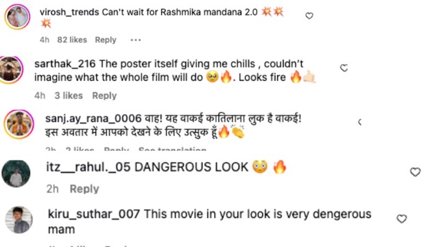 इस पोस्टर को शेयर करते हुए रश्मिका मंदाना ने कैप्शन में लिखा, ''मैं हमेशा आप लोगों को कुछ नया, कुछ अलग और कुछ रोमांचक देने की कोशिश करती हूं. यह उन्हीं में से एक है, एक ऐसा किरदार जिसे मैंने पहले कभी नहीं निभाया, एक ऐसी दुनिया जिसमें मैंने कभी कदम नहीं रखा, और अपने एक नए रूप से मिलना, जिसे मैं भी पहले नहीं जानती थी. यह बहुत ही खतरनाक, गंभीर और बिलकुल असली है. मैं थोड़ी नर्वस भी हूं और बहुत उत्साहित भी हूं. मैं सच में इसके रिलीज होने का इंतजार नहीं कर सकती. ये तो बस शुरुआत है.''