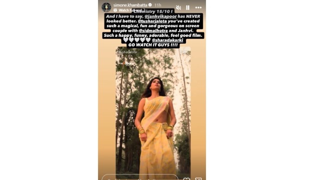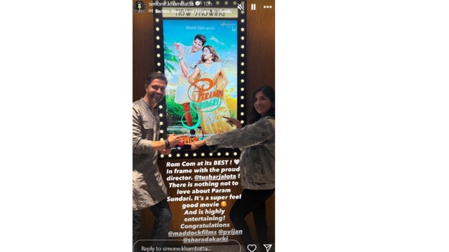 सिमोन ने अपनी इंस्टाग्राम स्टोरी पर लिखा, बेस्ट रोम-कॉम. प्राउड डायरेक्टर तुषार जलोटा के साथ फ्रेम में हूं. परम सुंदरी में ऐसा कुछ नहीं है जिसे पसंद न किया जाए. यह एक अच्छी फिल्म और बहुत एंटरटेनिंग मूवी है.”