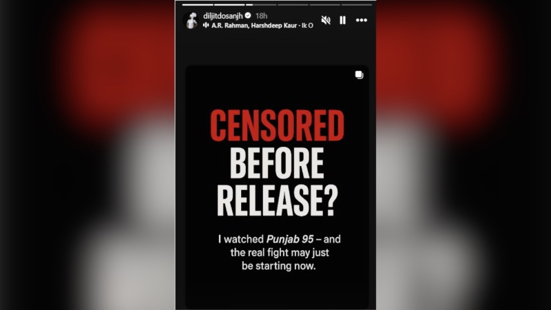 बता दें जैसे-जैसे 'सरदार जी 3' को लेकर विवाद बढ़ता जा रहा है, दिलजीत दोसांझ की सोशल मीडिया एक्टिविटी भी लोगों का ध्यान खींच रही है. सोमवार को उन्होंने इंस्टाग्राम पर एक पोस्ट रीशेयर की, जिसका टाइटल था — "रिलीज से पहले सेंसर?"