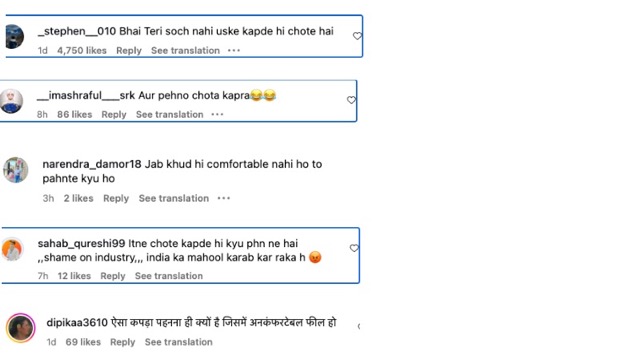 वहीं एक और यूजर ने लिखा, Itne chote kapde hi kyu phn ne hai ,,shame on industry,,, india ka mahool karab kar raka h