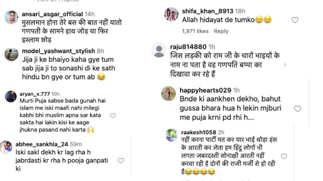 वहीं एक और यूजर ने लिखा, “नहीं करना पार्टी मत कर यार भाई थोड़ा हंस के आरती कर लेता हम हिंदू लोगों भी लगता जबरदस्ती सोनाक्षी आरती नहीं करवा रही है दोनों की राजी मर्जी से हो रही है.”