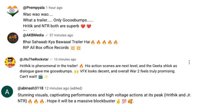 वहीं एक और यूजर ने लिखा, “वाओ वाओ वाओ....क्या ट्रेलर है..... रोंगटे खड़े हो गए......ऋतिक और एनटीआर दोनों ही शानदार हैं. ब्लॉकबस्टर फिल्म…..”