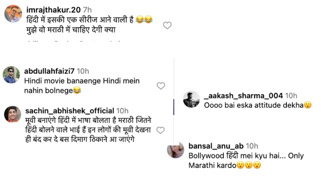 इतना ही नहीं एक और यूजर ने लिखा, “हिंदी में इसकी एक सीरीज आने वाली है, मुझे वो मराठी में चाहिए देगी क्या.”