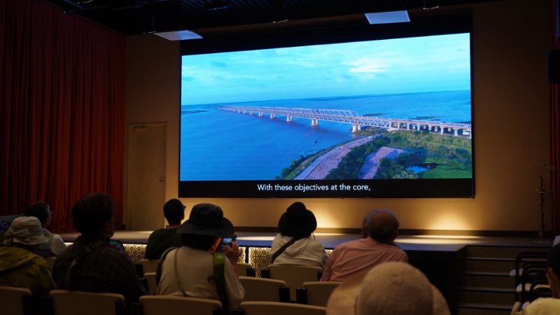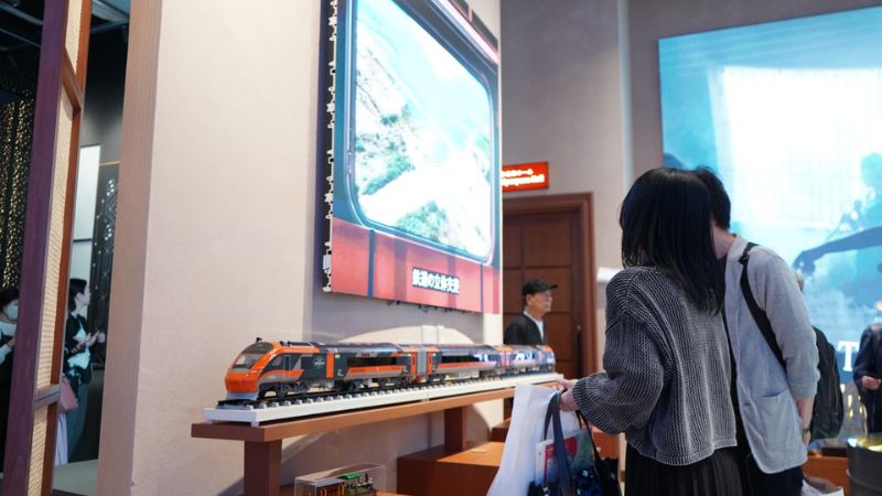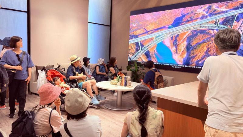 थोड़ा आगे, लोगों की भीड़ उस मिनिएचर मॉडल के चारों ओर जमा है – जो दुनिया का सबसे ऊँचा रेलवे पुल, चिनाब ब्रिज है. कुछ लोग तो इसकी अलग-अलग एंगल से फोटो खींचने के लिए नीचे झुक जाते हैं. नागोया के एक सेवानिवृत्त इंजीनियर बताते हैं, “यह एक संरचनात्मक चमत्कार है और यह हिमालय में बना है – यह अविश्वसनीय है.”