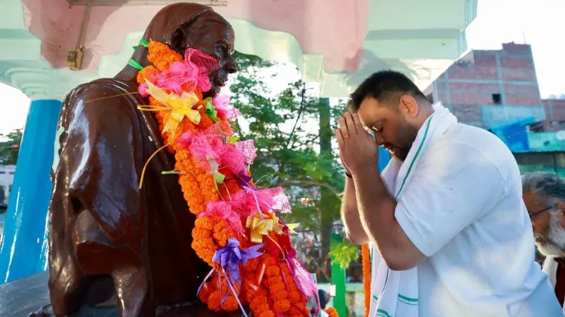 (Photo- दादी की प्रतिमा को प्रणाम करते तेजस्वी यादव)
